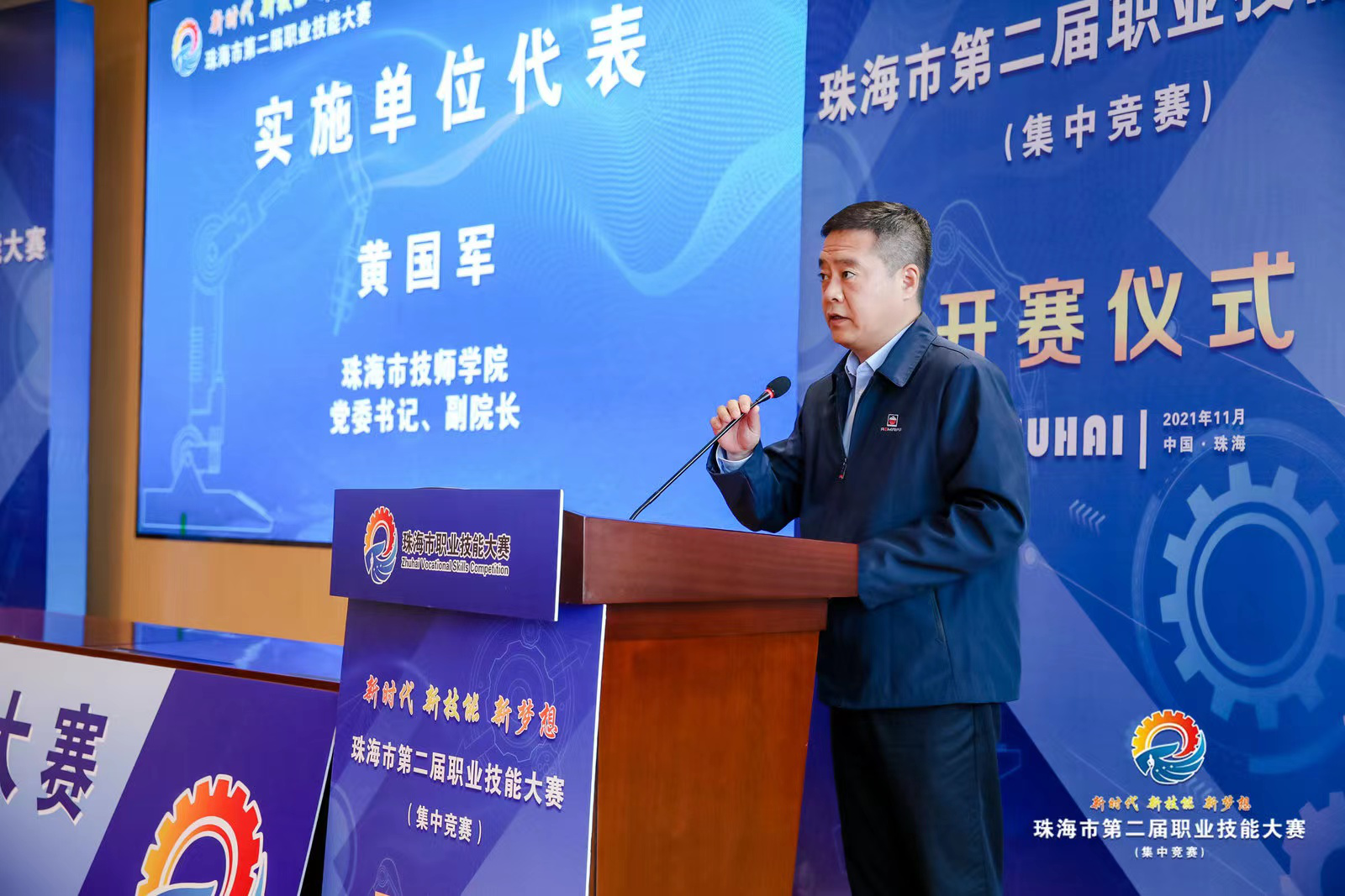 该大赛的初赛、决赛都在市技师学院金湾校区举行,其中,可编程序控制系统设计师、机器人编程与操作师2个项目由学院智能控制系承办;数控车工、数控铣工、焊工3个项目由学院智能制造系承办,负责赛事的具体组织。学院党委书记黄国军同志作为实施单位代表发言,他表示,大赛在学院金湾校区集中举办,是对学院高技能人才培养工作的充分肯定和信任,也是对学院的鞭策和鼓励,学院将以争创一流的精神,精心组织、周密安排,全面做好大赛的各项组织和服务工作,高标准、高质量、高水平地完成好各项工作任务,确保大赛顺利进行。