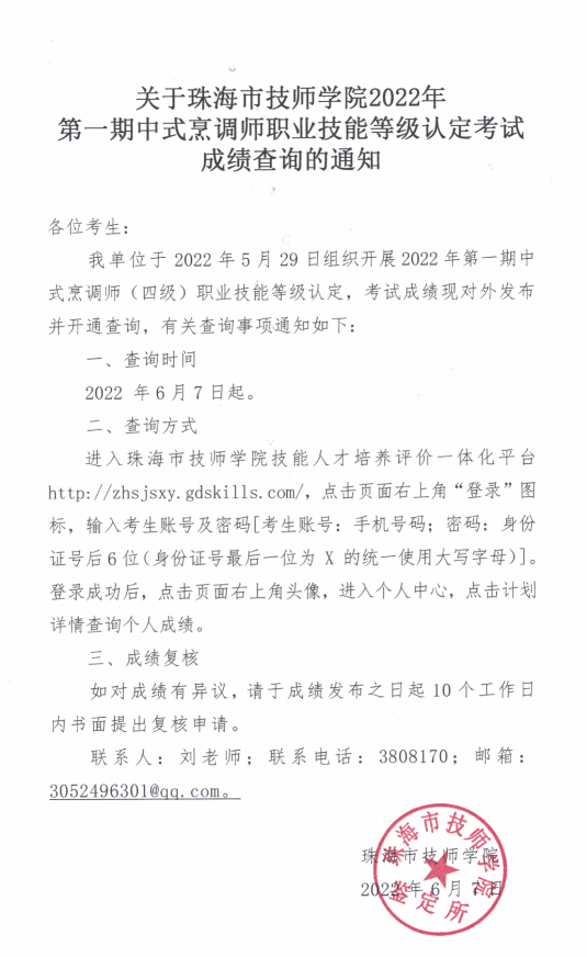 关于365账号无法登陆_365app下载安装_bet·365技师学院 2022 年第一期中式烹调师职业技能等级认定考试成绩查询的通知